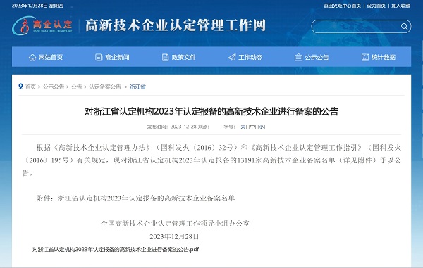 2023年12月28日,全國高新技術(shù)企業(yè)認(rèn)定管理工作領(lǐng)導(dǎo)小組辦公室發(fā)布《對(duì)浙江省認(rèn)定機(jī)構(gòu)2023年認(rèn)定報(bào)備的高新技術(shù)企業(yè)進(jìn)行備案的公告》,中國能源工程集團(tuán)有限公司(以下簡(jiǎn)稱“中國能源工程集團(tuán)”)所屬中清能源(杭州) 有限公司...